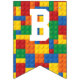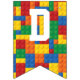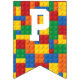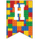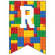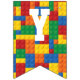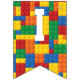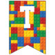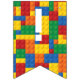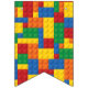 Coloridas construcciones de bloques de juguetes alegres banner de cumpleaños. Una gran pancarta para la fiesta de cumpleaños de un niño donde el tema son los bloques de construcción de juguetes entrelazados. Puedes cambiar el mensaje de feliz cumpleaños que quieras.