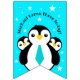 Celebra su primer cumpleaños con este diseño caprichoso, que incluye adorables pingüinos en forma de huevo con corbatas azules alternando tonos azul claro y azul oscuro. Diseño © W.H. Sim. Ver más en zazzle.com/expressionsoccasions