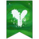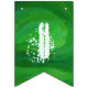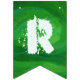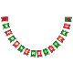 Banderas de decoración de Navidad Rojas y Verdes con nuestra textura característica de pincel seco en colores festivos rojos y verdes con letras blancas que deletrean, Feliz Navidad. En las banderas del extremo está nuestro arte original de una corona de acebo y un lazo rojo brillante. Disfruta la temporada navideña y diviértete decorando con nuestro divertido y colorido diseño navideño.