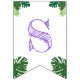 Divertido dinosaurio Banner de bandera de 2do cumpleaños con agua rosada y púrpura tirannosauro rex y hojas verdes. Ideal para un fiesta prehistórico del día del chica.