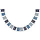 Un cartel con banderas que encajan en el bautismo de un niño, primera comunión o confirmación religiosa. Las banderas tienen varios matices azules: azul marino, azul clásico y azul polvoriento. Las letras son de color amarillo dorado. La primera bandera tiene una cruz.
