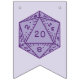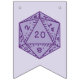 Celebra un cumpleaños especial con este banner de banner con temas de D&D. Tiene las palabras "Feliz Cumpleaños" y d20 decoraciones de dados en un tema morado.