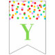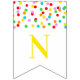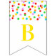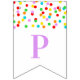 El bebé asperja la bandera de la fiesta de bienvenida al bebé con el modelo del confeti del arco iris.