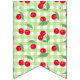 Un fondo a cuadros como un leñador de líneas verdes y blancas pastel resalta el llamativo color rojo de las cerezas con sus hojas. Este bonito y delicado diseño es perfecto para los amantes de la fruta.