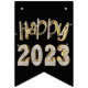 Feliz Año Nuevo 2023 Typografía Elegante Letras con diamantes negros y blancos y oro falso, guión moderno, banderas de Bunting de Año Nuevo Fiesta de Moda
