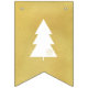 Esta banderas incluye texto blanco de Feliz Navidad con un moderno y minimalista árbol de Navidad sobre un falso fondo dorado.