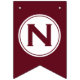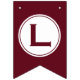 Esta pancarta muestra "FELICITACIONES" esparcidas por las banderas de borgoña en otoño.
