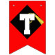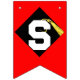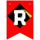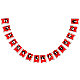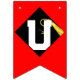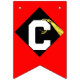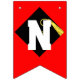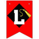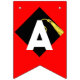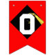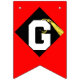 Pancarta de los graduados de la fiesta de graduación con gorra negra y dorada sobre fondo rojo.
