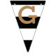 Un diseño de banner con bandas de rayas negras y doradas con la palabra "felicitaciones" que se puede personalizar con tu redacción y colores.