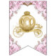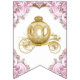 Una vez en un banner de cumpleaños con lujosos remolinos rosados y dorados y hermoso carro de princesas de oro. Puedes cambiar el estilo de letra y el color de esta adorable princesa de cuento de hadas una vez en un banner de tiempo. Este es un diseño impreso sin ningún purpurina real, etc.