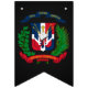 Cartel de fiesta con el emblema nacional de la República Dominicana; diseño azul, rojo y blanco