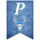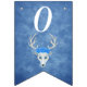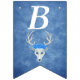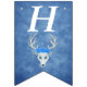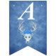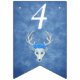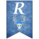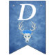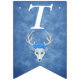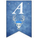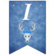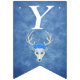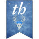 Este banner con forma de bandera que envuelve el Feliz Cumpleaños es una mezcla de blues neblinoso con una fantástica cabeza de ciervo blanco con cuernos y tres rosas azules bonitos en la cabeza. Personalizar el año de cumpleaños con las plantillas.
