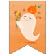 Un bonito fantasma sonríe alegremente mientras flota a través de un fondo naranja oscuro, sosteniendo un ramo de flores caídas como una embustera linterna de jack-o' sobre la cabeza del fantasma. Ilustracion original de Noël Snow.