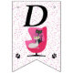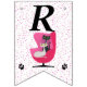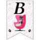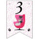 Este cartel con forma de bandera que enarbola el Feliz Cumpleaños es blanco con puntos rosados de polka y un gato negro y blanco sentado en una silla rosa brillante de mediados de siglo con dos huellas de pata de gato. Personalizar el texto Feliz Cumpleaños y el año de cumpleaños con las plantillas.