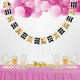 El elegante cartel de la fiesta de graduación incluye "¡Felicidades!" con detalles del patrón de puntas de grad, rayas y polka. Color negro, blanco, plata y oro.