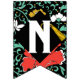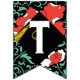 La graduación creativa congrata la decoración fiesta con tapón de graduación negro y dorado sobre fondo floral.
