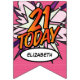 Banderines FELIZ 21 CUMPLEAÑOS Cómic Libro Pop Art Pink