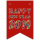 Feliz Año Nuevo 2019 Fiesta de fuegos artificiales Tipografía Bandera roja de Bunting Nochevieja, celebración del Día de Año Nuevo