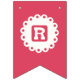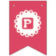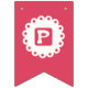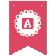 "FELIZ CUMPLEAÑOS" con banderas en color rosa caliente con una etiqueta circular blanca en el centro con las letras. Por Monkey Business Graphic Design, 2020. El acento perfecto para todas tus fiestas de cumpleaños.