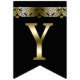 "Cumpleaños feliz" con letras metálicas de oro y bonito, adornado, borde dorado en la parte superior de cada bandera con un fondo negro.
