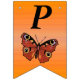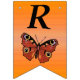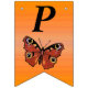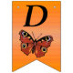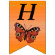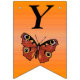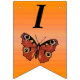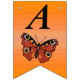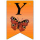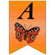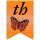 Este cartel con forma de bandera que enlaza el Feliz Cumpleaños es un naranja vibrante con una mariposa monarca de bonito con alas marrones y marcas coloridas. Personalizar el texto Feliz Cumpleaños y el año de cumpleaños con las plantillas.