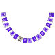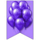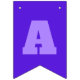 Cartel de afichado en morado, con texto de "Feliz cumpleaños". También, agregue una foto del chica de cumpleaños, o niño, a una de las banderas usando la plantilla. Las imágenes de la primera y última bandera son un montón de globos. Las letras alternan con las violetas oscuras y claras. Lea más sobre los paquetes en la descripción del producto.
