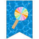 Este cartel de banderas de racimo de postre tiene un fondo de fondo de piscina de agua azul con las palabras "Feliz cumpleaños" y 3 carrozas de charco de dulces. Hay un helado, un cono de helado y un chupete giratorio. He hecho esto para que puedas personalizar el diseño con diferentes tipos de letra o letras ocultas y añadir otros caracteres flotantes. Hay otros 4 flotantes ocultos que usar dependiendo del tamaño del mensaje. También se puede hacer que el patrón de la piscina sea más grande o más pequeño en cada bandera. Espero que las decoraciones de los fiestas de la piscina estén en lo alto.