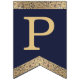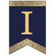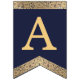 Banderines Feliz Cumpleaños Navy Blue Gold 3 Letras Nombre J