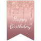 Banderines Feliz cumpleaños - Rosa de oro Purpurina de Rubor