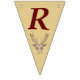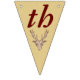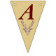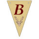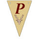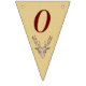 Este banner en forma de bandera con forma de bunting Happy Birthday es de color marrón claro con letras rojas profundas y una cabeza de ciervo marrón delineada de color rojo con grandes antángulos en cada bandera. Personalizar el año de cumpleaños con las plantillas.
