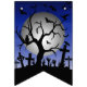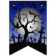 Ilustracion de Halloween con decoración de árbol, murciélagos, búho y cementerio en luna llena