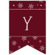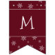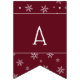 Esta pancarta de la bandera de la bandera muestra un patrón de copo de nieve en el otoño borgoña como fondo del saludo de Feliz Navidad. Cada uno de los indicadores tiene un elemento de texto modificable para que el mensaje se pueda actualizar a su saludo preferido.