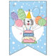 Haga especial su cumpleaños Gray & White Sheepadoodle con nuestro adorable diseño de temática canina con un gorra fiesta y globos coloridos.