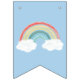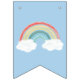 El diseño de la fiesta de cumpleaños del arco iris, estilo acuarela dulce, es ideal para un cumpleaños de bebé o un fiesta infantil. El azul del fondo y el suave estilo boho son agradables y dulces.