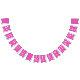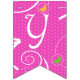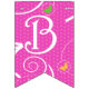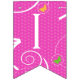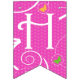 Se une a la temática del fiesta un banner de afiche fiesta con las letras "Feliz Cumpleaños" en cada bandera y una polka violeta con fondo salpicado de flores alrededor de cada carta. Como parte del tema "Cumpleaños de las Fezas Africanas", este es un lindo diseño para los chicas en su día especial de celebración.