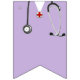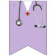 Decoración de banderines para fiesta de doctor creativa con batas de hospital lavanda y rayas.