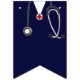 Decoración única de celebración de la escuela de medicina o banderín de fiesta de médicos con batas de hospital azul marino, estetoscopio y rayas.