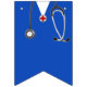 Decoración única de celebración de la escuela de medicina o banderín de fiesta de médicos con batas de hospital azul real, estetoscopio y rayas.