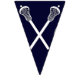 Fiesta creativo del equipo de lacrosse o decoración de eventos deportivos con palos laxos y ilustraciones de bola sobre fondo azul marino.