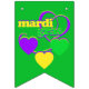 Mardi Gras Mensajes de texto y corazones en los colores del carnaval de Nueva Orleans Colores color morado verde amarillo, elegante Bunting Fiesta Mardi Gras