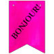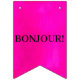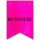 Palabra francesa, BONJOUR (buen día en francés/hola) en letras negras sobre un sólido fondo magenta.