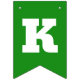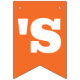 Orange and green St Patrick's Day bunting flags spelling out Oh For Luck's Sake with bold letters, and two flags with a four leaf clover and horseshoe pattern.