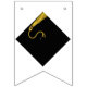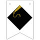 Decoración de fiesta de graduación con gorras de graduación negras y doradas girando de manera creativa.