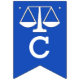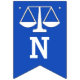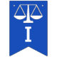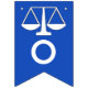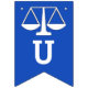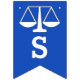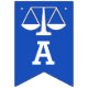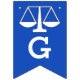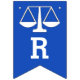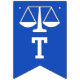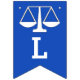 Cartel de felicitaciones a la facultad de derecho de los abogados, con Scales of Justice sobre un fondo azul.