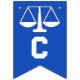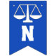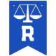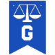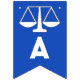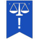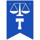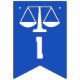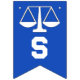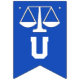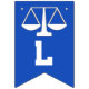 Graduación de la facultad de derecho felicitaciones a la decoración fiesta, con escalas de justicia de fondo azul.