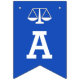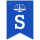 Felicitaciones a abogados o estudiantes de derecho decoración fiesta con un patrón de diseño de escalas de justicia de fondo azul.