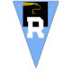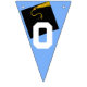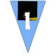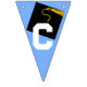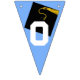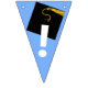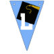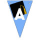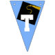 La decoración de la fiesta de graduación presenta el tapón negro y dorado en un fondo azul claro.
