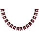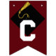 Decoración de graduación con tapones negros y dorados sobre fondo marrón.