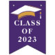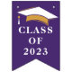 Decore el porche, el lugar o la escuela con nuestras felicitaciones banderas de racimo morado y blanco para su fiesta de graduación y sus celebraciones. Para más personalizares, haga clic en el "Personalizar con la herramienta de diseño" para cambiar los colores o tipos de letra para que coincidan con los colores de la escuela. CONSEJO: En nuestra tienda también hay disponibles otros artículos de fiesta de graduación coincidentes.