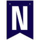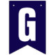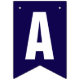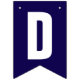These dark blue and white bunting flags spell 'Grand Opening!'. There are also three flags you can display your company logo.